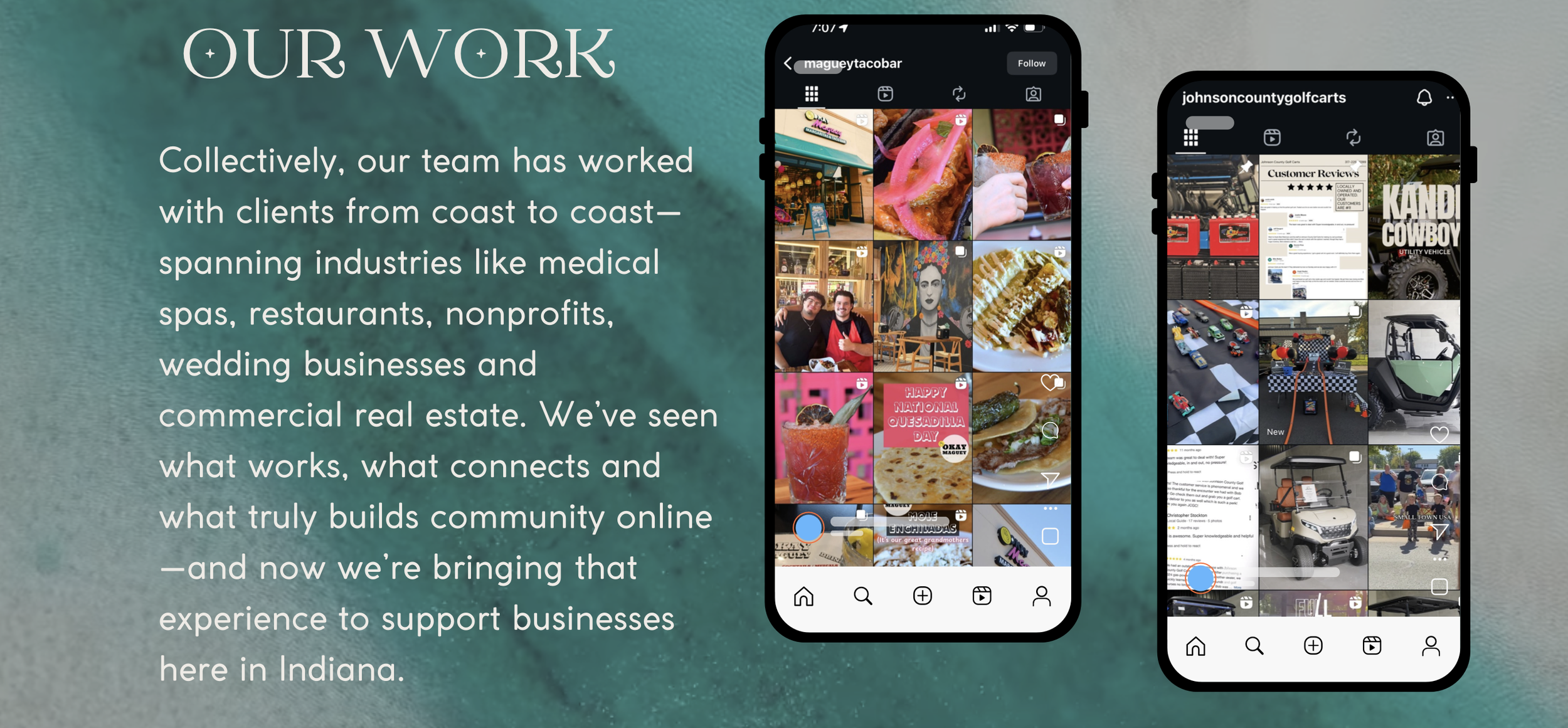 Whether we’re behind the camera capturing brand content, curating an eye-catching feed, or managing campaigns that convert, our mission is simple — to help our clients stand out and thrive in today’s digital world.