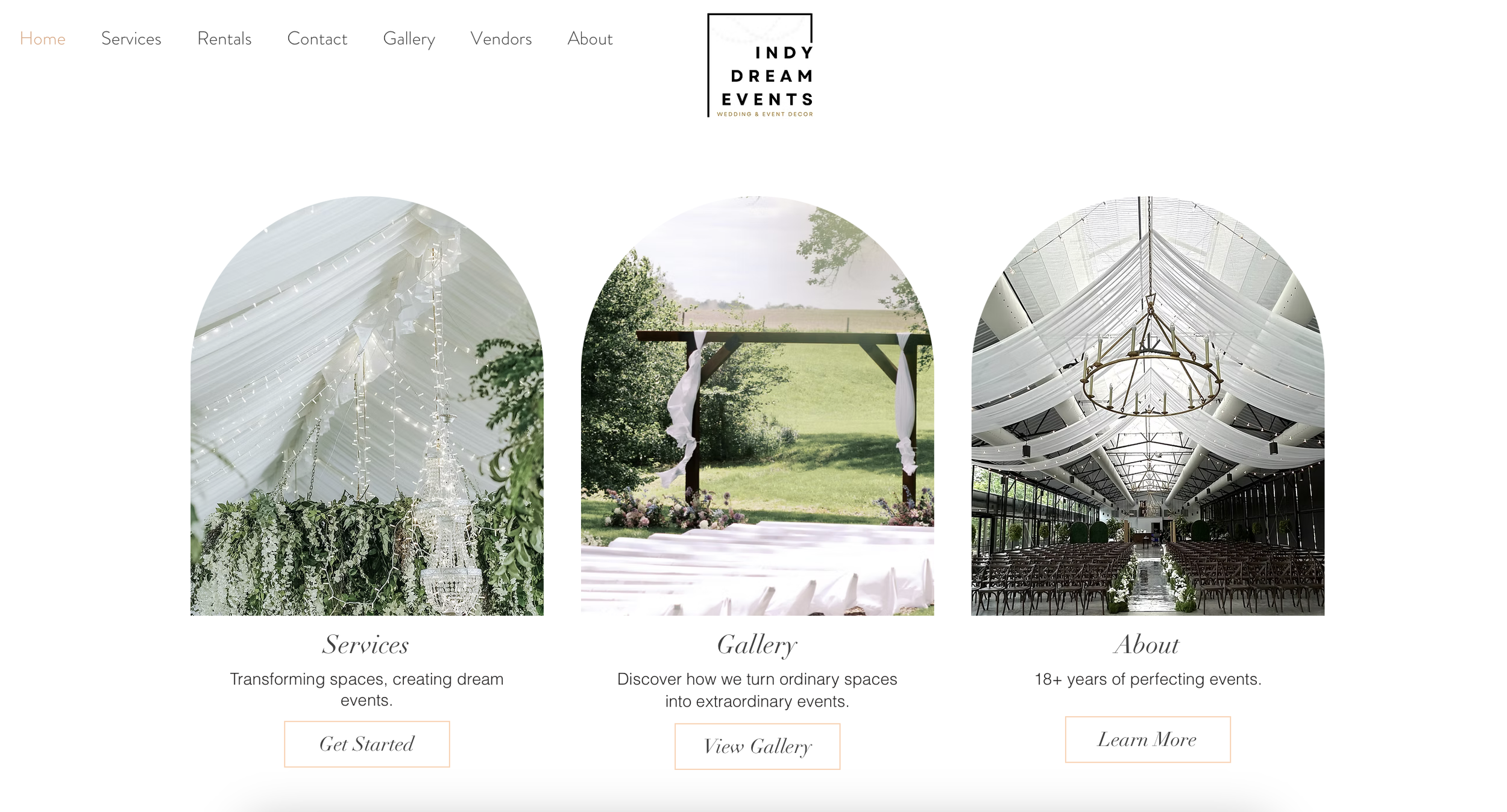 For Indy Dream Events, we designed a modern, visually captivating website that tells their story through stunning imagery and seamless navigation. Our team continues to manage and update the site, keeping each new event beautifully showcased and on brand.
