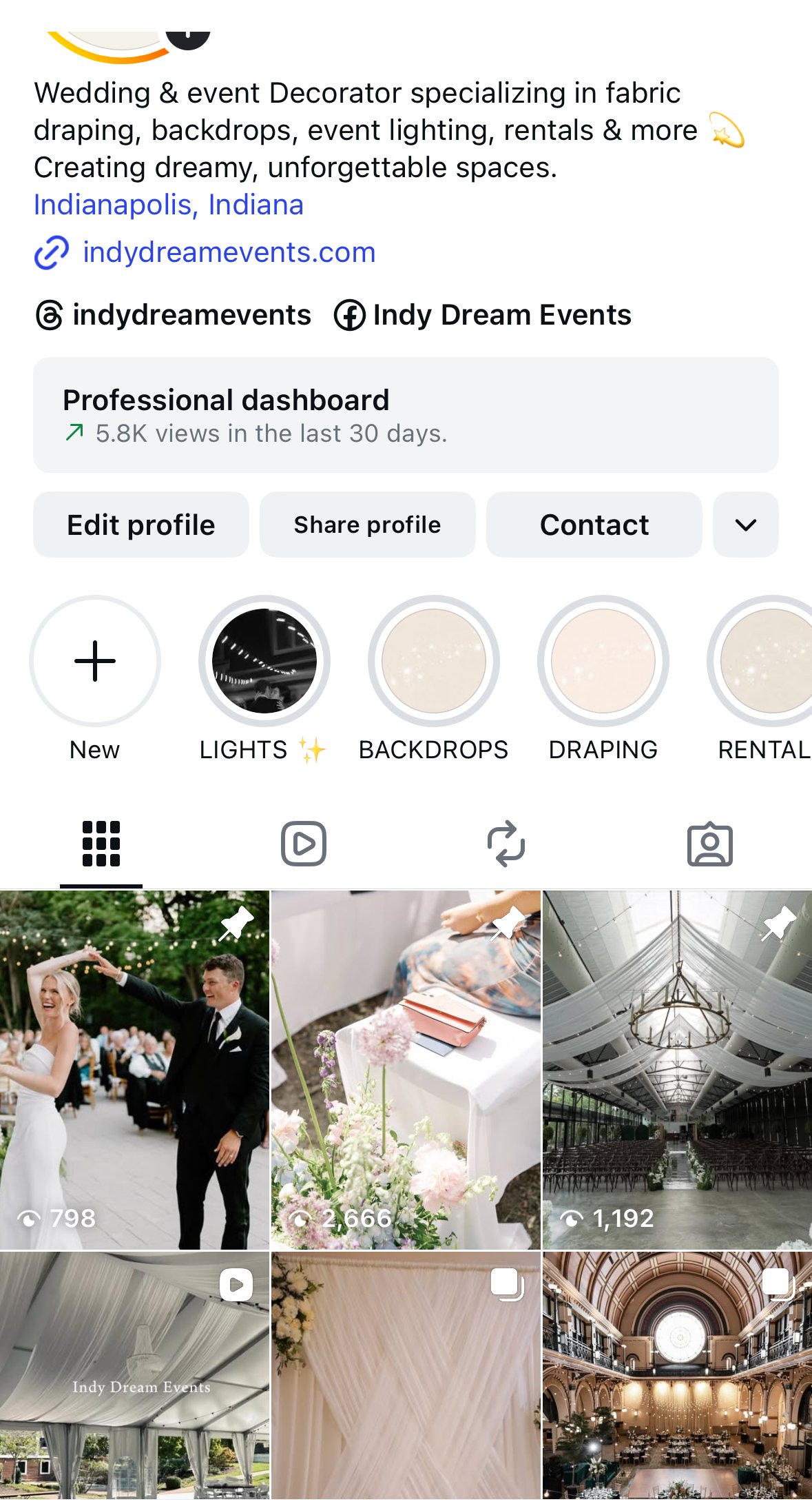 Objective: Build brand awareness, drive event bookings, and create an engaging online presence that reflects the premium experience Indy Dream Events delivers — while fostering strong relationships with key vendors such as planners, florists, and venues to ensure a cohesive brand network.